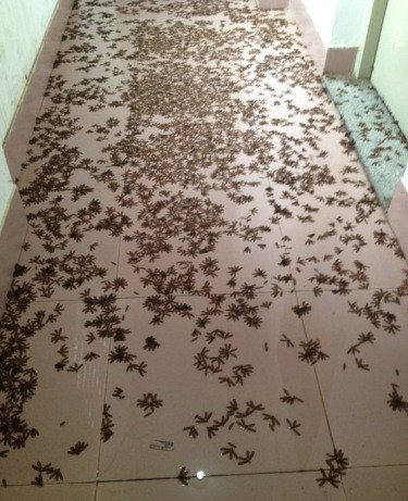 中山校園大學學生在新浪微博上感嘆,飛蟻數量居然多到讓小伙伴不慎品嘗了一只。大家紛紛用書本等拍打,有同學甚至想在宿舍養青蛙。